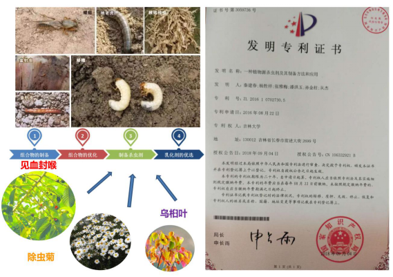本成果为一种植物源杀虫剂及其制备方法和应用,以重量份数计,包括以下植物原料组分见血封喉乳汁一份、竹醋液一份、除虫菊乙醇提取物一份、乌柏叶乙醇提取物一份。本发明的植物源杀虫剂,以植物作为原材料,原材料中包括大部分现有植物杀虫剂原材料,不但对农作物无药害,无残留,不污染环境,持效期长,并且通过个原料的合理配比之后,最终实现数据表明,本发明具有良好的配伍性,并且各组分之间相辅相成、具有协同增效作用,使得组合后获得的天然植物提取物比单独任一一种组合具有更好的杀虫防治效果。已经申请到国家发明专利。