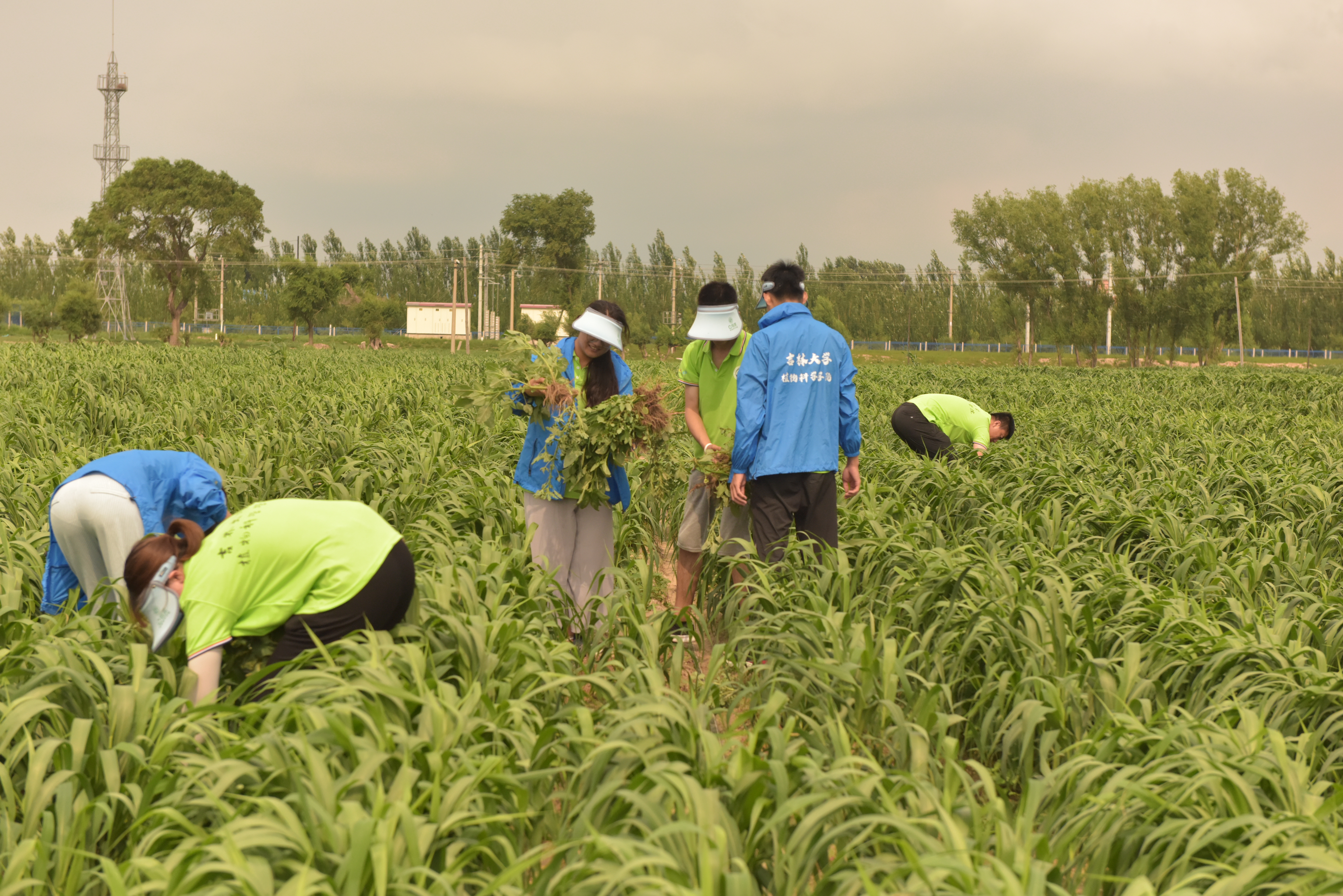 随后,实践团来到beats365亚洲版官网崔金虎教授的试验田进行参观学习。近年来,崔金虎教授为当地农民提供优质种子,结合专业知识对农民进行技术指导,将脱贫攻坚工作开展到田间地头,亲自为农民授课,积极参与并推进县乡农技人员的继续教育,真真切切地把科研成果应用在田间,把国家的相关政策落实到每家每户,极大的提高了当地农作物的产量以及质量,解决了当地农业发展中存在的诸多问题。在崔金虎教授的指导下,实践团的同学们深入实验田间进行除草,热辣的阳光炙烤着同学们,一颗颗汗水从额头滑过砸在泥土中。除草活动结束后,崔金虎教授为同学们详细讲解浅埋滴灌水肥一体化技术,应用此技术成功实现补水和施肥的高效精准。崔教授亲切地与同学们进行交流,他希望同学们作为农科专业学子,要对农业有情怀、有奉献精神,继承发扬吉大学子最为朴素真挚的家国情怀,真正将科研成果写到田间地头,致力农业发展,助力乡村振兴。