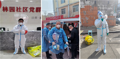 3月12日,突如其来的严峻疫情迫使长春按下暂停键,开启“居家办公”模式,王永明、朱家帅和徐启宝三位同志立即报名参与志愿者服务,化身“大白”,每天协助医护开展全员核酸检测,维持秩序。没有核酸检测任务时,又变身巡逻队员,对小区的流动人员进行劝阻管理。