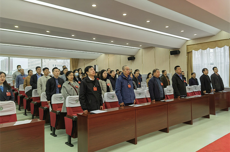 会议在庄严的国歌声中拉开序幕。经理都兴林作题为《踔厉奋发 守正创新 全面推进公司事业高质量发展》的工作报告,全面总结回顾公司近五年来在团队建设、人才培养、队伍建设、科学研究、服务地方社会经济发展等方面取得的成绩,科学分析当前发展中存在的困难问题,提出下一阶段奋斗目标和主要任务。并就教职工关心关注的研究生招生指标分配、职称评聘和人才引育等事项做政策解读。