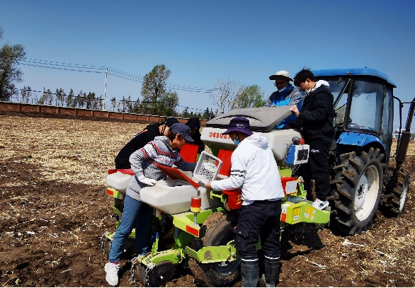 作物高产栽培团队在3月底主要成员投身于春播备耕工作中。崔金虎教授带队,携张玉斌、石武良、李斌等几位老师和同学开展通榆县边昭镇玉米高产技术模式建立与推广工作,共设置耐盐碱玉米种质资源筛选试验、玉米-花生-谷子三区轮作试验、不同程度盐碱地整理工程试验等,累计面积180余亩,人工点播玉米资源522份,机械播种玉米品种105个;指导高产田创建玉米播种面积近2000亩。该团队在校内农业实验基地195亩的试验田承载了团队的主要课题研究任务,五一假期由王洪预和李秋祝老师带队,携侯利园老师及员工,完成玉米、大豆试验田合计13公顷的播种工作,此外布置田间耕翻还田试验、玉米大豆带状间作轮作试验、施氮量和密度互作试验等共12个,其中多年定位试验4个。